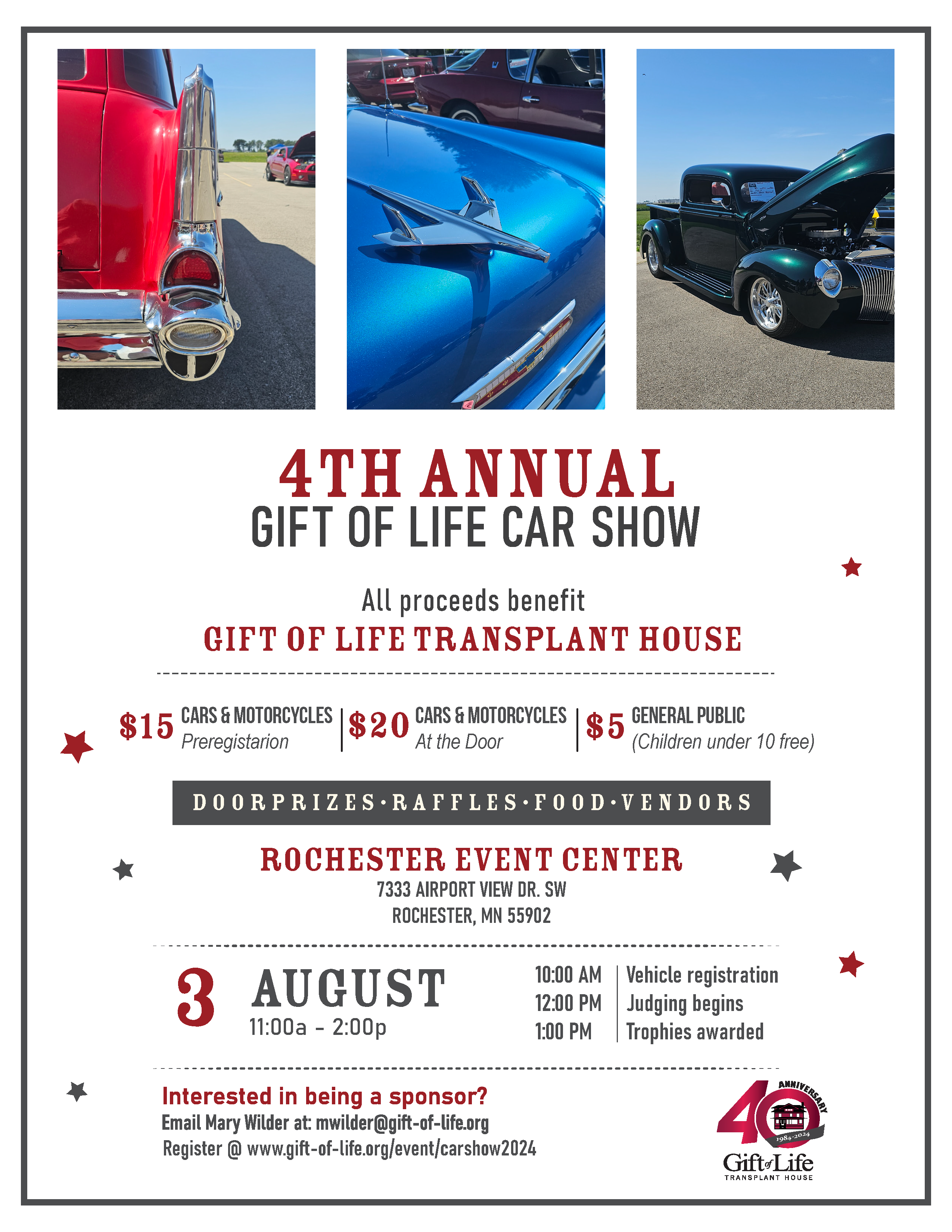 Gift of Life Transplant House presents its 4th Annual Car Show. Open to all makes and models, rain or shine!