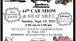 Auto Restorers 44th Annual CAR SHOW & SWAP MEET Sunday Sept. 20, 2020 6:00 AM to 3:00 PM NICOLLET COUNTY FAIRGROUNDS St. Peter, MN Rain or Shine Car Show is Always 3rd Sunday of September ADMISSIO...