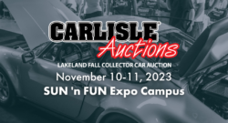 The Lakeland Fall Collector Car Auction is at the SUN ‘n FUN Expo Campus in Lakeland, Florida. 400 consignments are anticipated at Lakeland Winter with Carlisle Auctions. The auction starts at 1...
